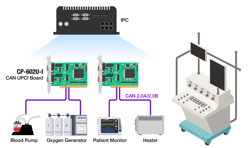 To ensure high-reliability operation in life-support systems, medical equipment manufacturers use CAN interfaces, particularly in heart-lung machines. These systems require compact designs and need to be compatible with Industrial PCs (IPCs) to streamline development and integration.