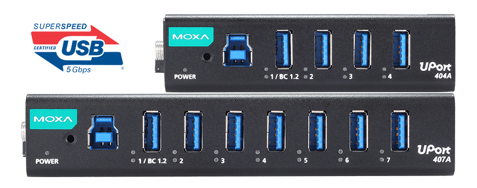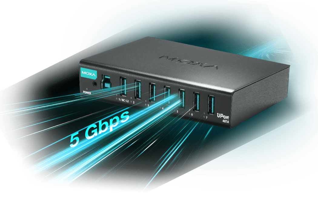 Moxa's full range of USB 3.2 solutions for USB-to-serial converters and USB hubs enhances speeds from 480 Mbps to 5 Gbps.