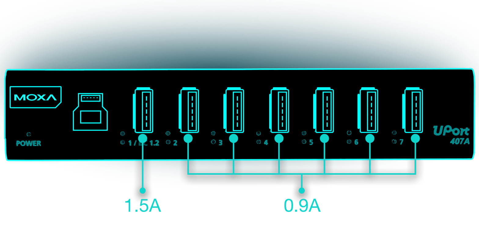 The UPort G2 hubs deliver 0.9A of power to all ports and 1.5A to port 1 (which supports BC1.2), enabling flexible USB expansions without requiring additional adapters.